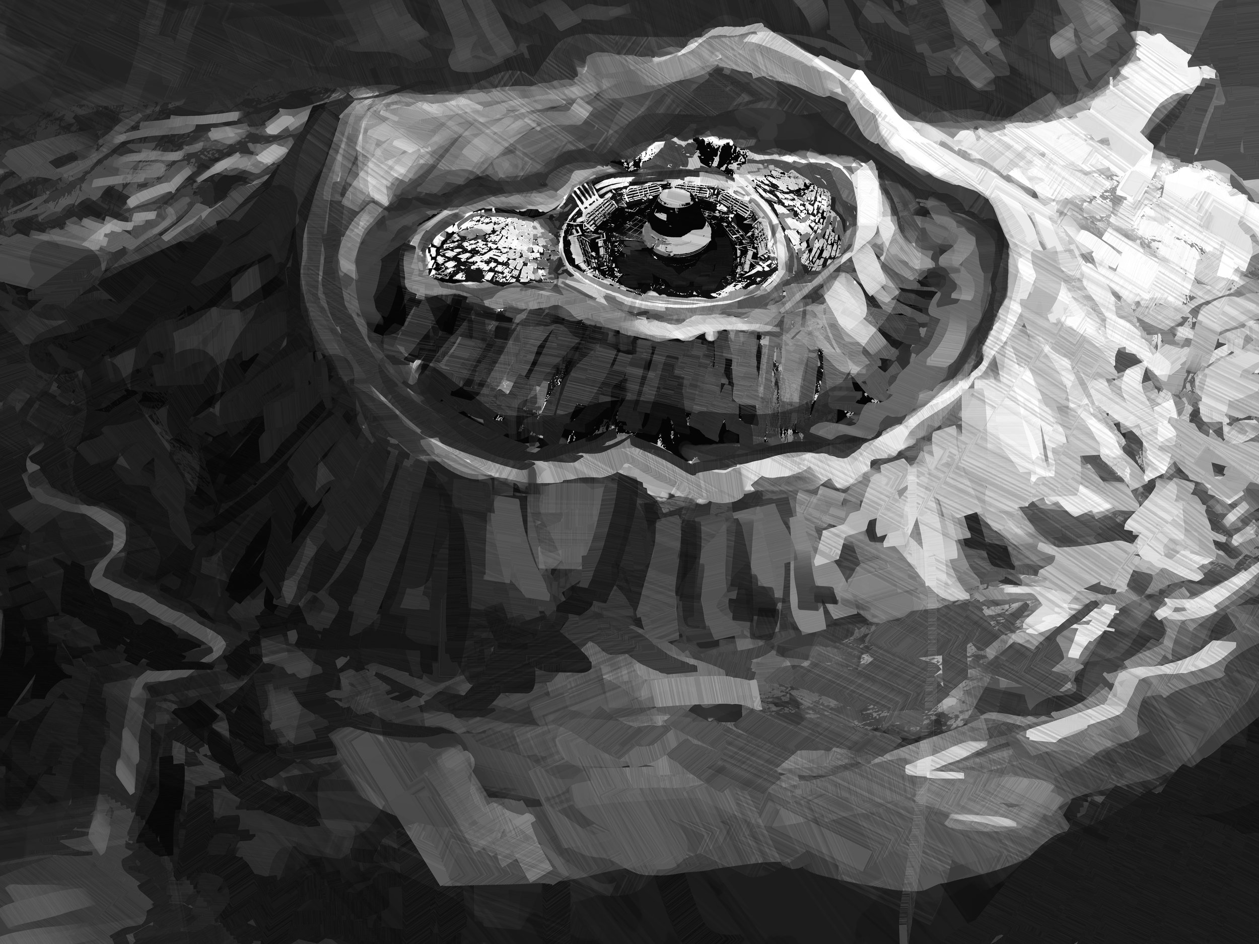 The aim now was to show how the people inside interact with the tower in the center in order to show what the culture inside was like.