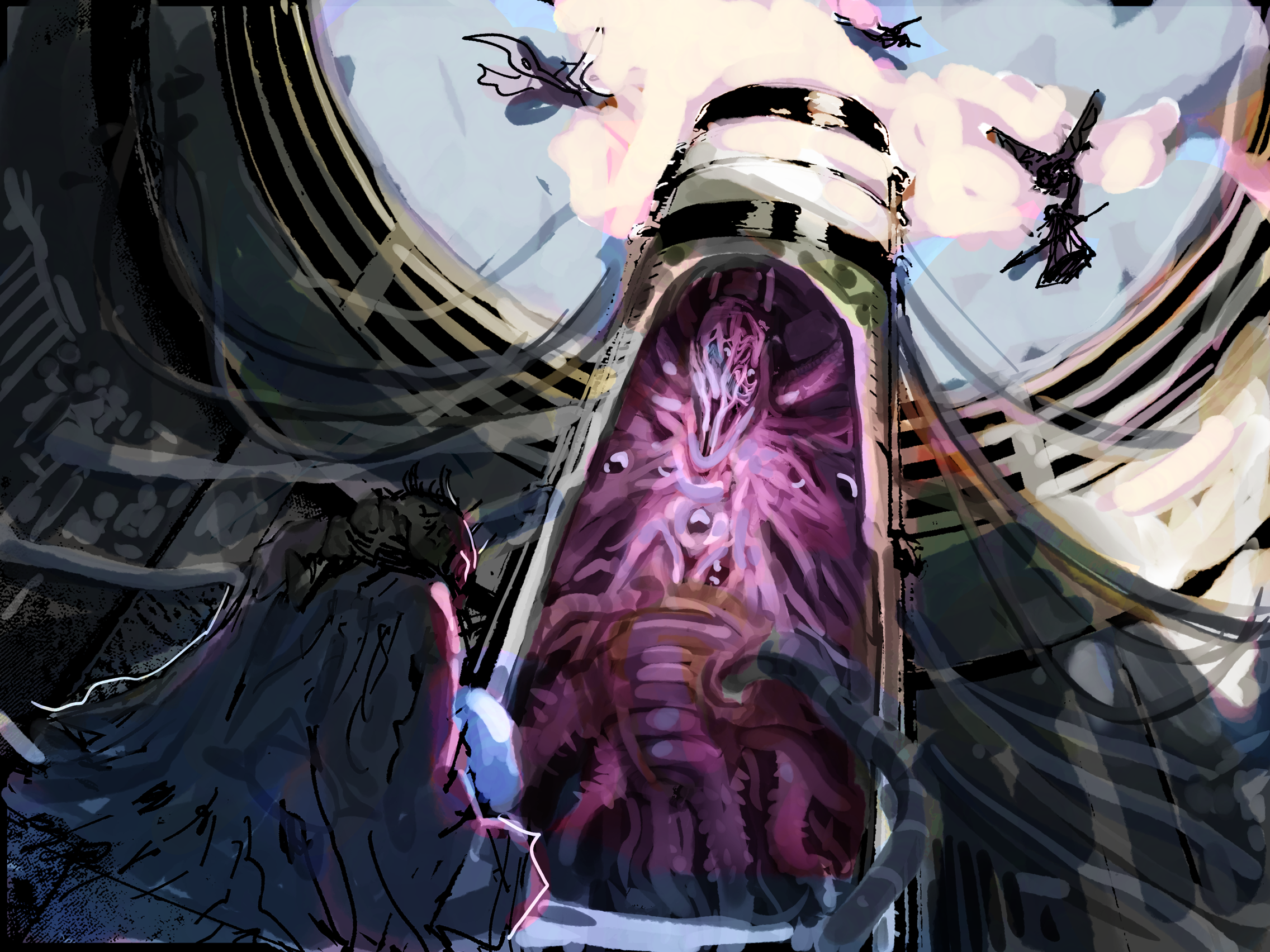 Task was to make the sixth illustration of my narrative thesis project. To tell the story as efficiently as possible I had to represent a location while also depicting what life is like within it.